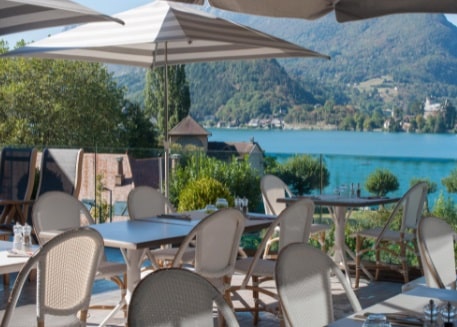 Situado a la salida de la ciudad en dirección a Albertville y con vistas al lago, a la playa y al barrio de los Marquisats, el hotel dispone de 23 habitaciones todas decoradas de forma diferente con vistas al lago o al bosque. Todas están equipadas con televisión, teléfono e Internet de banda ancha.A partir de 97 euros la noche.